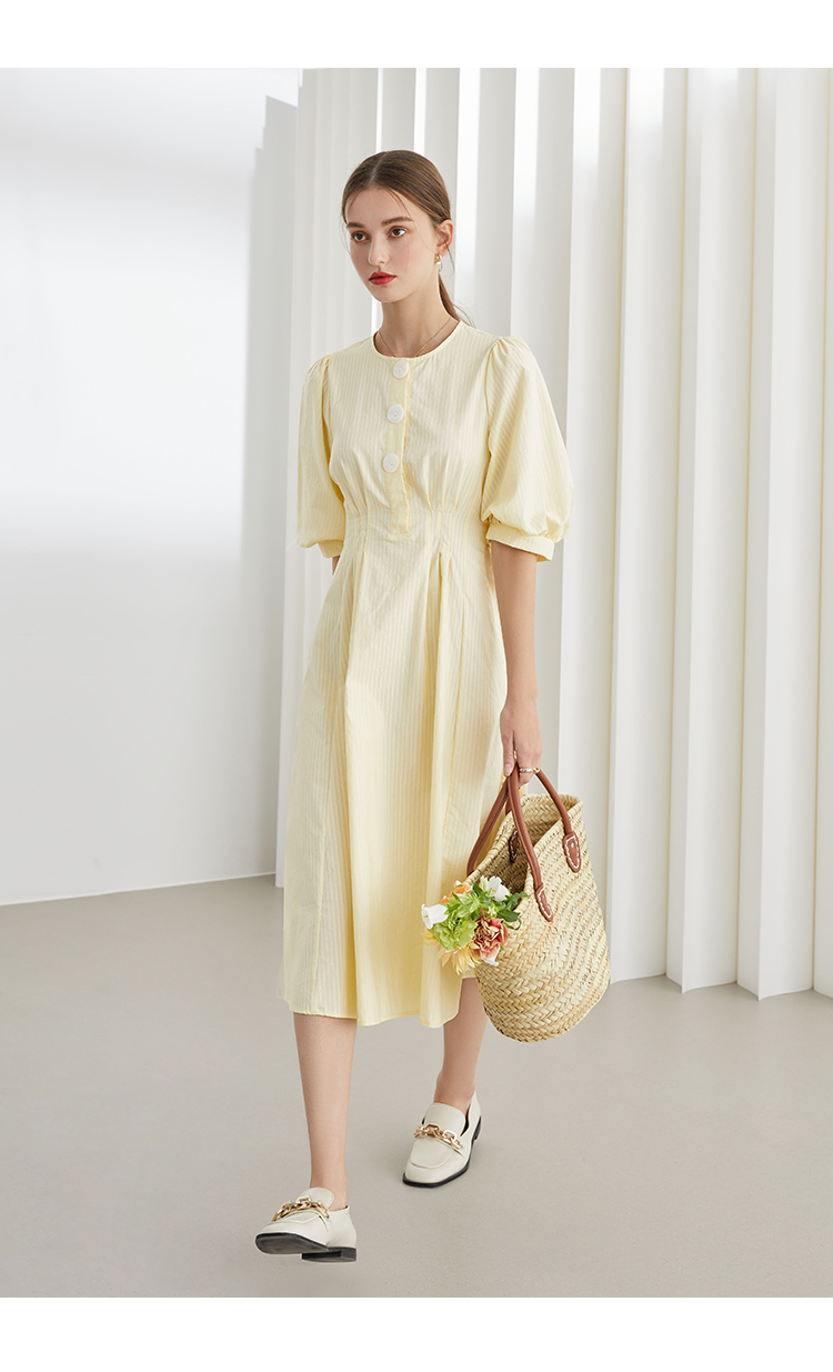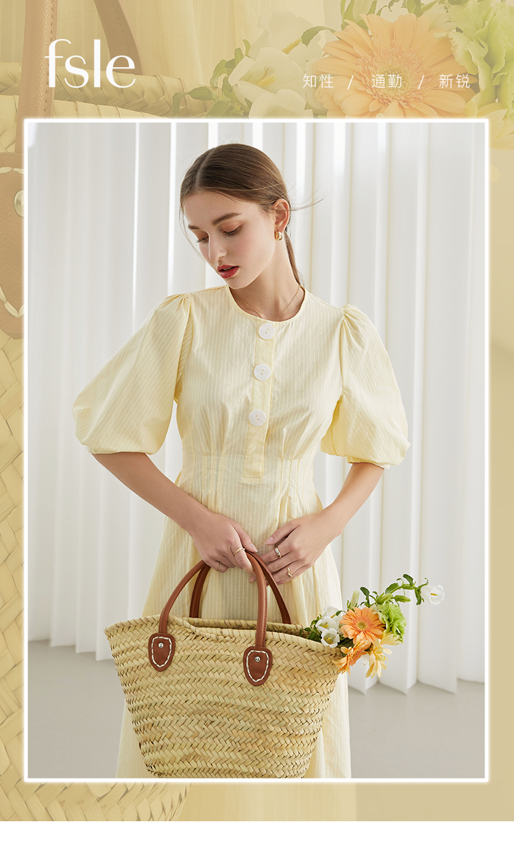 | 商品名称 | 范思藍恩泡袖縞ワンピス2021新商品夏優しい風のフランス風甘いスカート女性211436浅黄色M |