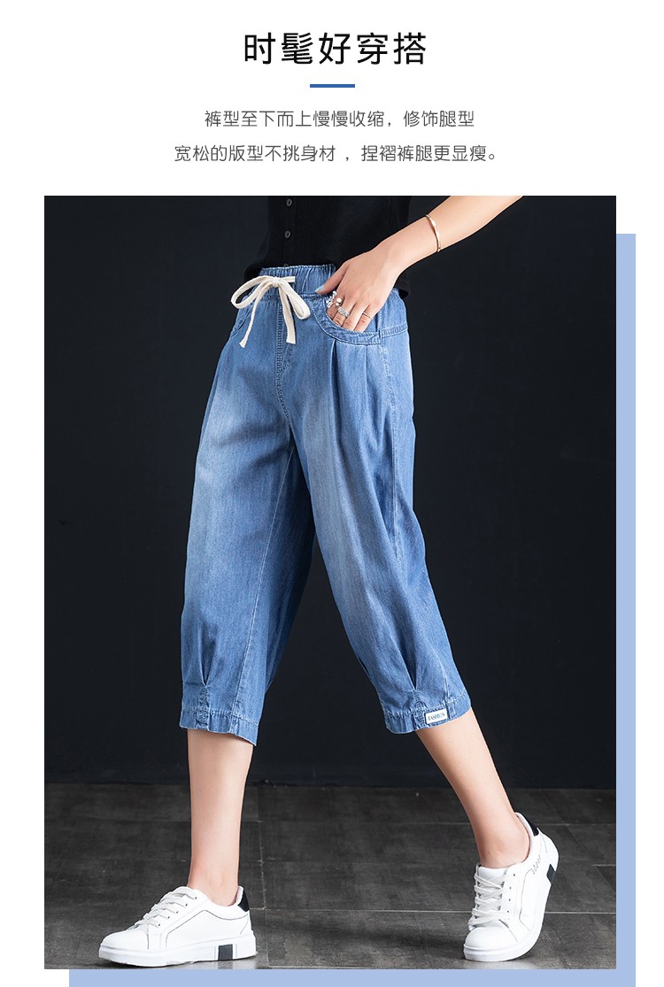 | 商品名称 | 雪沐蓉高腰ジーンズ女性ゆったり七分のズボン2020年夏薄ファッション女性純綿七分の半ズボン女性顕痩せ六分のズボン百合哈倫ズボン浅青色M |