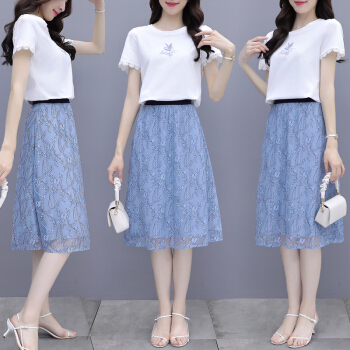 | 商品名称 | 単蜜ワンピス2021年夏新着商品韓国版優雅気質減齢顕痩せTシャネット紗二点セットセトスカート白XXL |