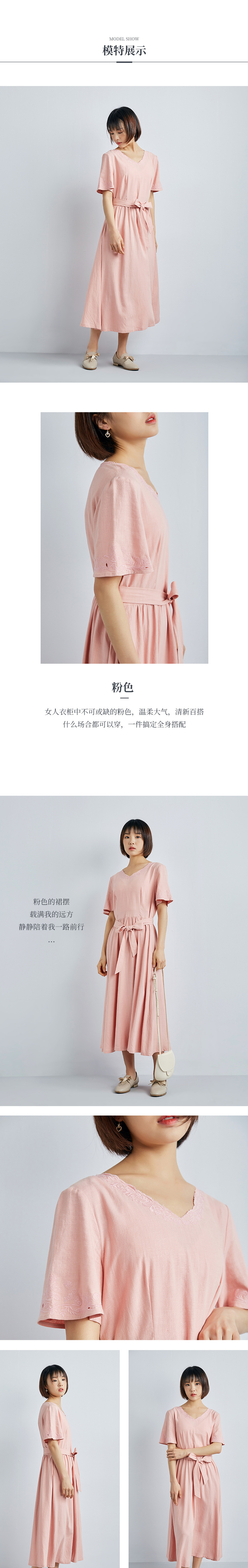 | 商品名称 | 茵曼清麻シリーズ夏服新着商品V襟文芸刺繍ベルトが細く見えるA字ワンピス女性【1892102022591】ピンクM |