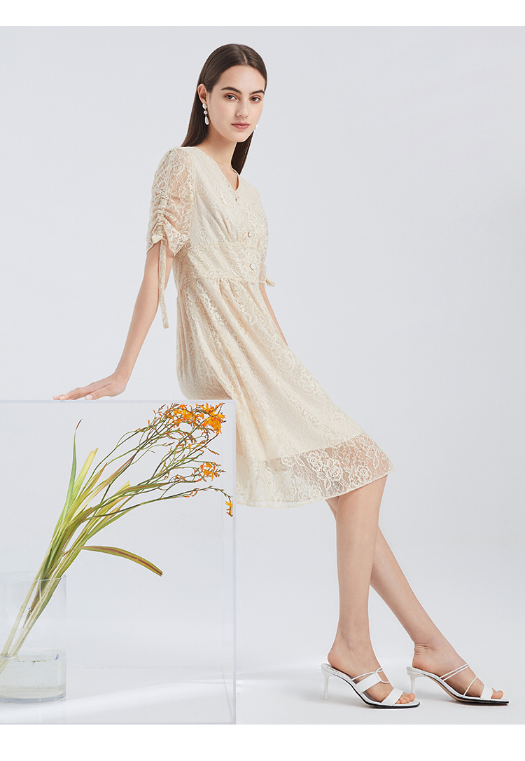 | 商品名称 | EITTIE愛2021夏新商品優雅レトロ調Vネックウエストが見えるスリムな泡袖レースのプリントワンピス女性B 107714アンズ色13 160/38/M |