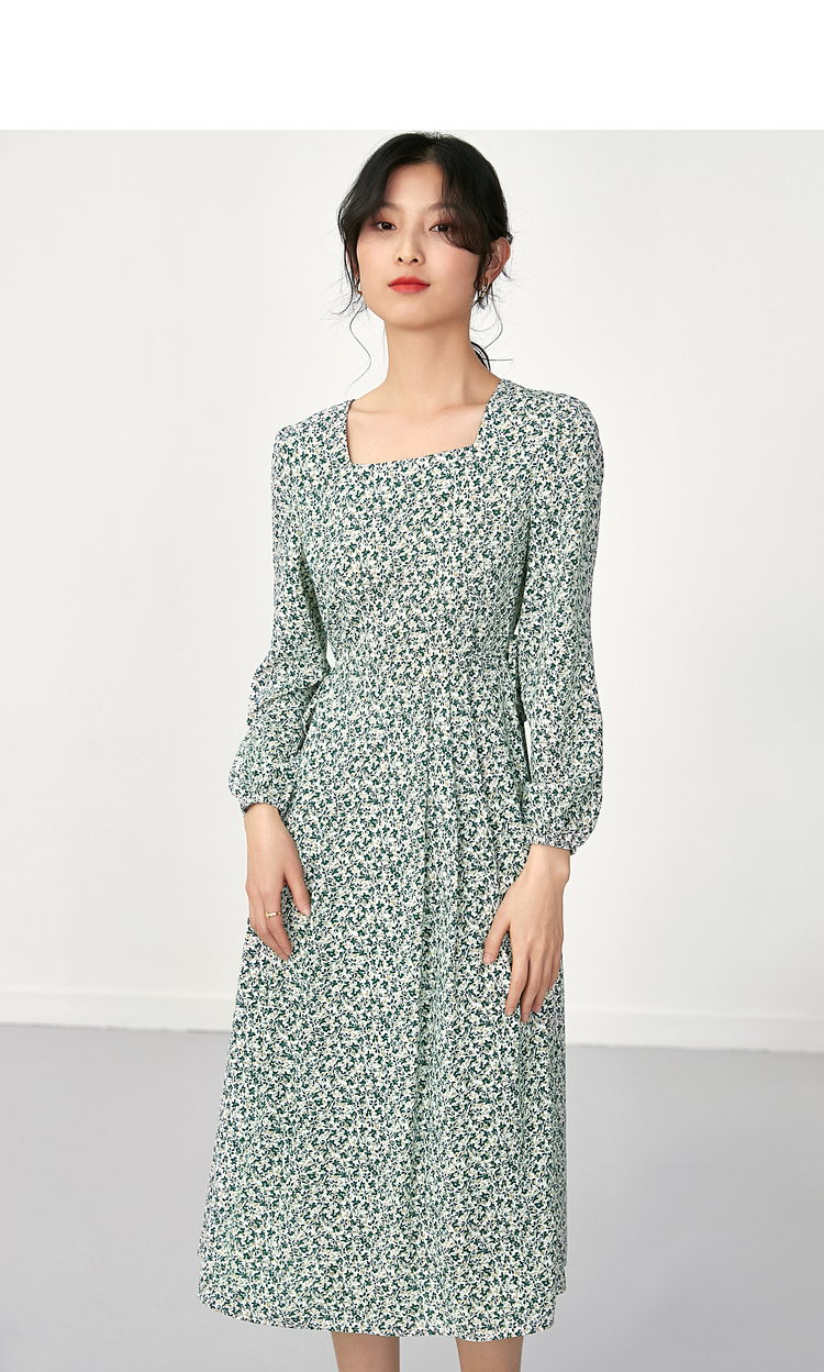 【尚都比拉711 L 348】尚都比拉気質收腰打色ケープ二枚セット小花ワンピス春スタイル女装顕痩せローングスカート711 L 348緑底花柄S【相場見積り価格評定】-
