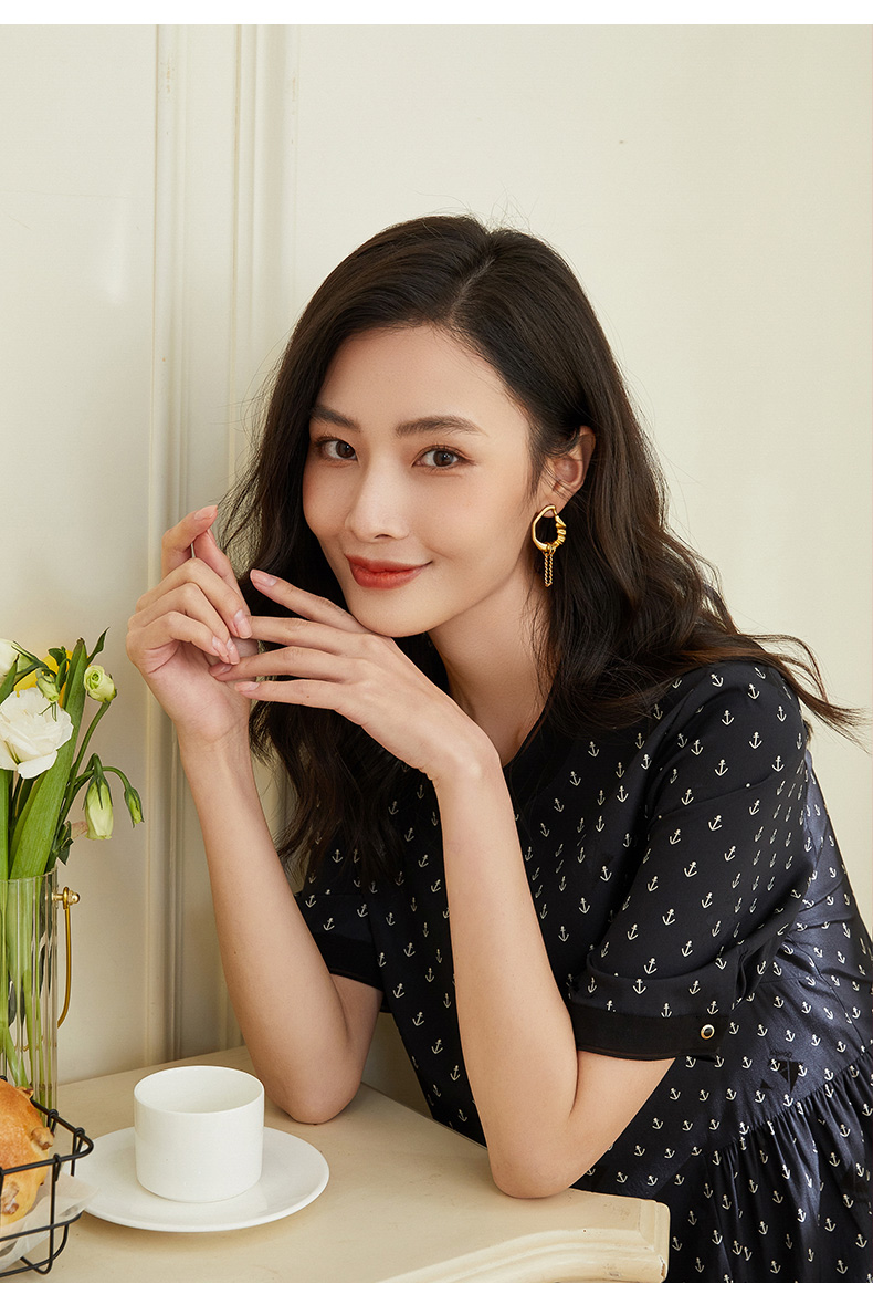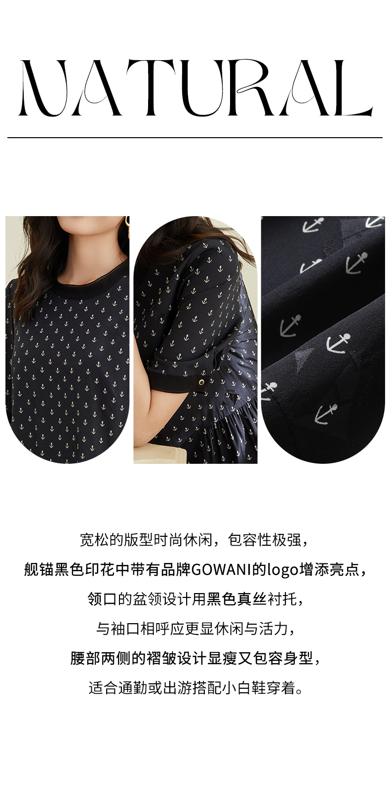 乔万尼真丝ワンピース女2022年新着商品上品桑蚕丝商场同款 舰锚图案 170/92A/XL