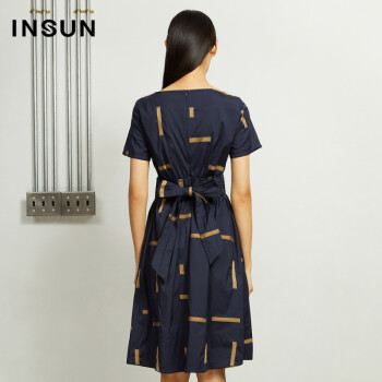恩裳商场同款时尚舒适半袖收腰修身a字中长款ワンピース夏新着商品女装 藏蓝 36/S【图片 价格 品牌 报价】-